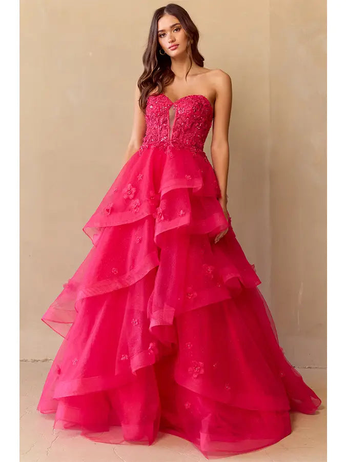 Make a vibrant statement in this playful BabyFox Apparel 4900 dress featuring big, layered hot pink fabric that twirls with every step. Adorned with charming 3D flowers, it adds a whimsical touch perfect for turning heads and sparking smiles at any special occasion.