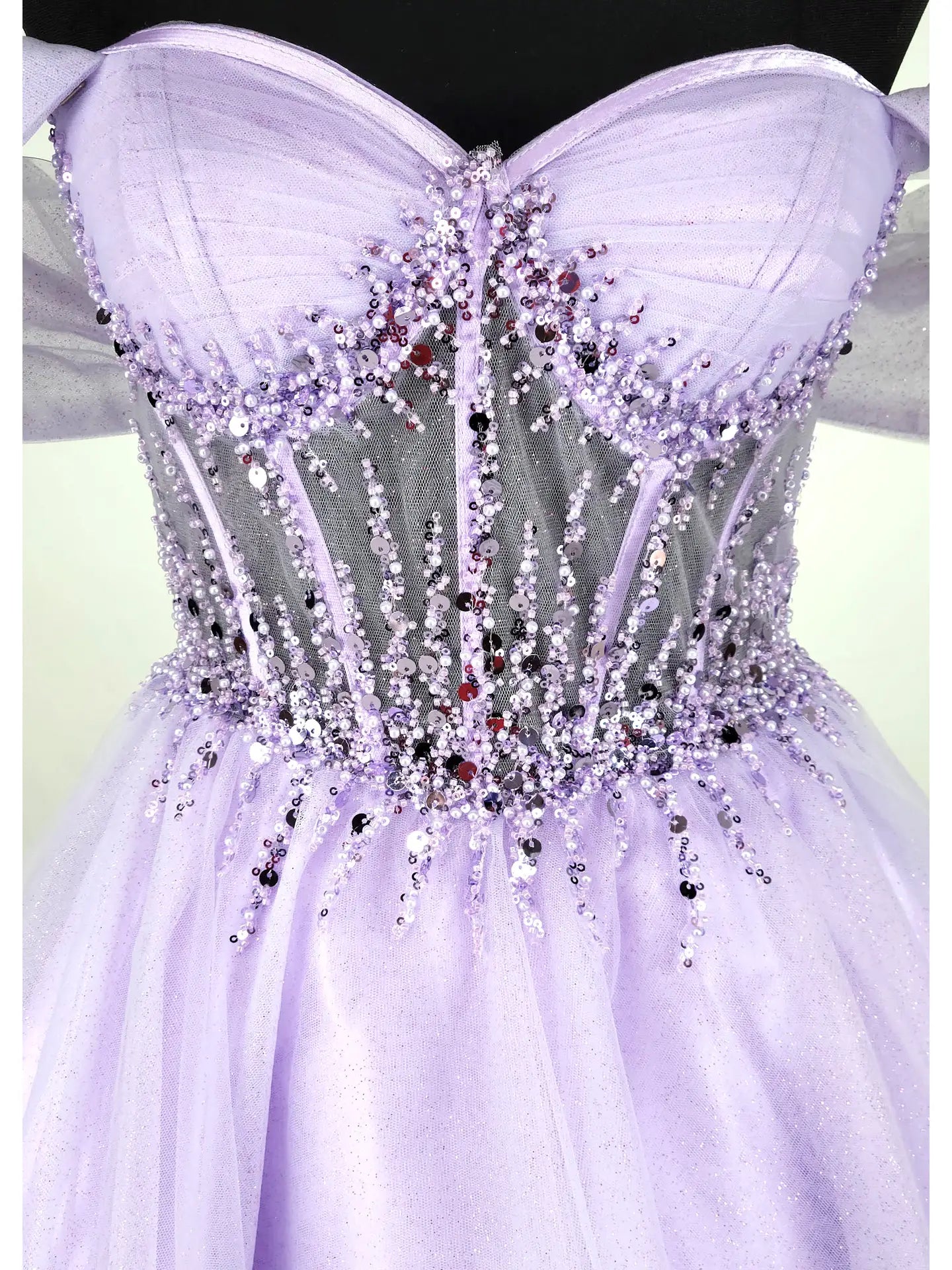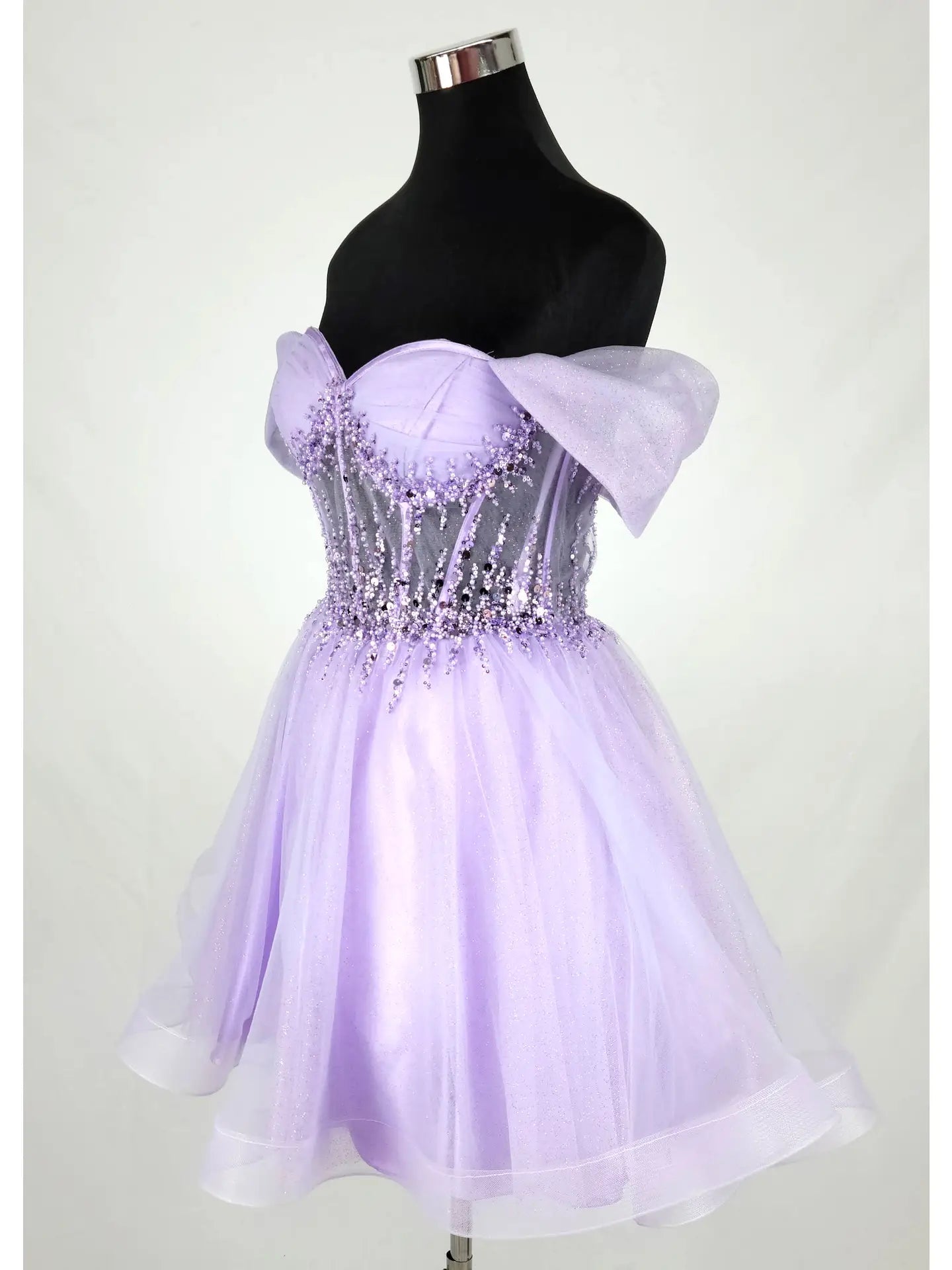 Turn heads in the C363 Chicas, a playful short formal dress featuring dazzling off-the-shoulder beading and sequins. Its sparkling details add a flirty shine perfect for parties, while the chic silhouette keeps the vibe fun and fresh. Dance the night away with confidence and charm!