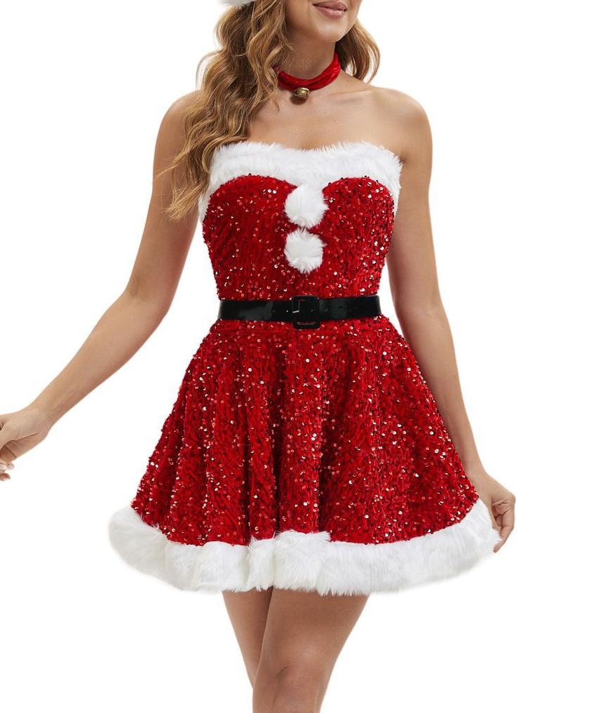 Get ready to sleigh the holiday season in this festive velvet Santa outfit! Featuring rich red velvet with eye-catching sequin details, this playful ensemble includes everything you need for the perfect Christmas look. The set comes complete with the iconic Santa jacket, matching pants, a jolly belt, and the signature Santa hat. Whether you're attending a holiday party, caroling with friends, or just spreading Christmas cheer, this outfit delivers major festive vibes with a fun, sparkly twist. Perfect for anyone ready to embrace their inner Santa and make this season merry and bright!