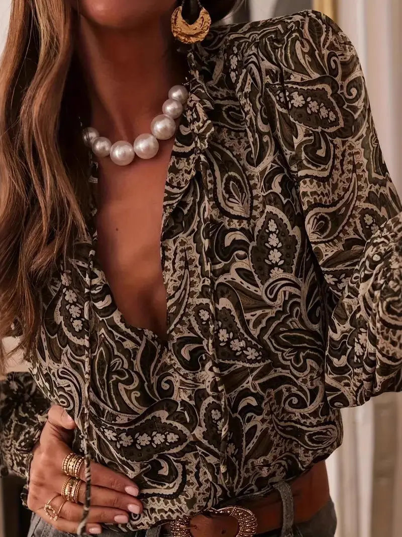 Embrace effortless style with this charming paisley print loose blouse that's ready for anything. The delicate ruffle frills add a flirty touch while the relaxed fit keeps you comfortable all day long. Available in rich red, warm coffee, and classic black, this versatile piece pairs beautifully with jeans, skirts, or trousers. Perfect for casual outings or dressing up with the right accessories, it's the go-to blouse that brings personality to your everyday wardrobe.