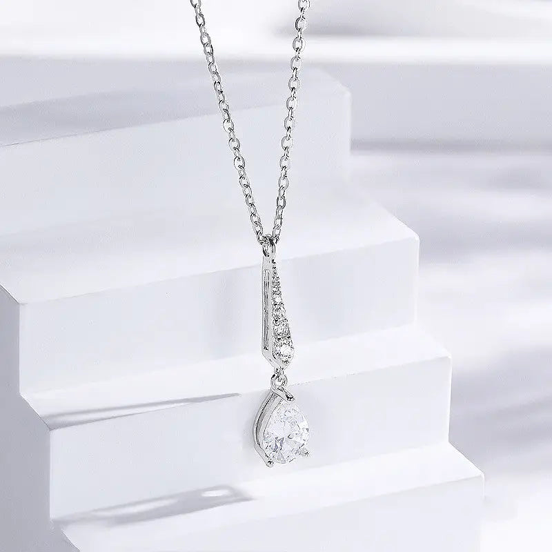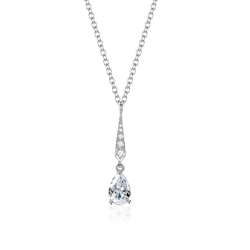 Catch every light and every heart with this stunning teardrop pendant wedding necklace. Crafted in lustrous silver with sparkling diamond accents, this piece is the perfect blend of elegance and romance. The graceful teardrop shape adds a touch of sophistication to any bridal look, while the brilliant diamonds ensure you'll shimmer as you walk down the aisle—or dance the night away. A timeless treasure that celebrates your special moment with understated glamour and just