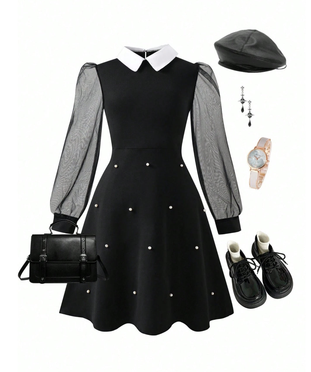 The Wednesday Dress brings gothic-chic style to your little one's wardrobe. This striking black and white collared dress features sheer sleeves that add an elegant, mysterious touch. Perfect for special occasions, costume events, or anyone who loves a bold, sophisticated look. The classic color combination pairs effortlessly with any accessory, making it a versatile piece that stands out from the ordinary.