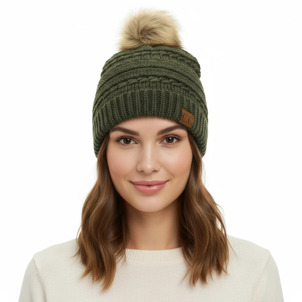 Stay cozy and cute with this whipstitched faux fur pom beanie! Crafted from soft knit material, it features a fluffy faux fur pom-pom on top that adds instant charm and personality. Perfect for chilly days when you want to look effortlessly stylish while keeping warm. The playful pom detail makes it a fun accessory that works with any winter outfit.